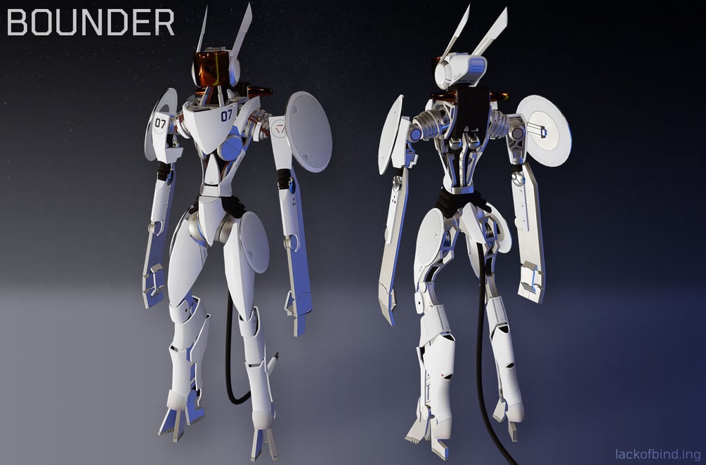 "A cargo-loader designed for use in micro-gravity. Originally designed to be tele-operated during construction of the first orbital spaceport, this frame has since seen re-use for anti-gravity sports, spaceport security, personal use, and more."