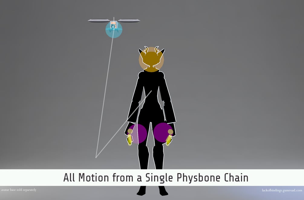 - Designed to work with any VRC avatar. SDK version must be new enough to support Physbones 1.1 (3.2.0 or newer, in theory).