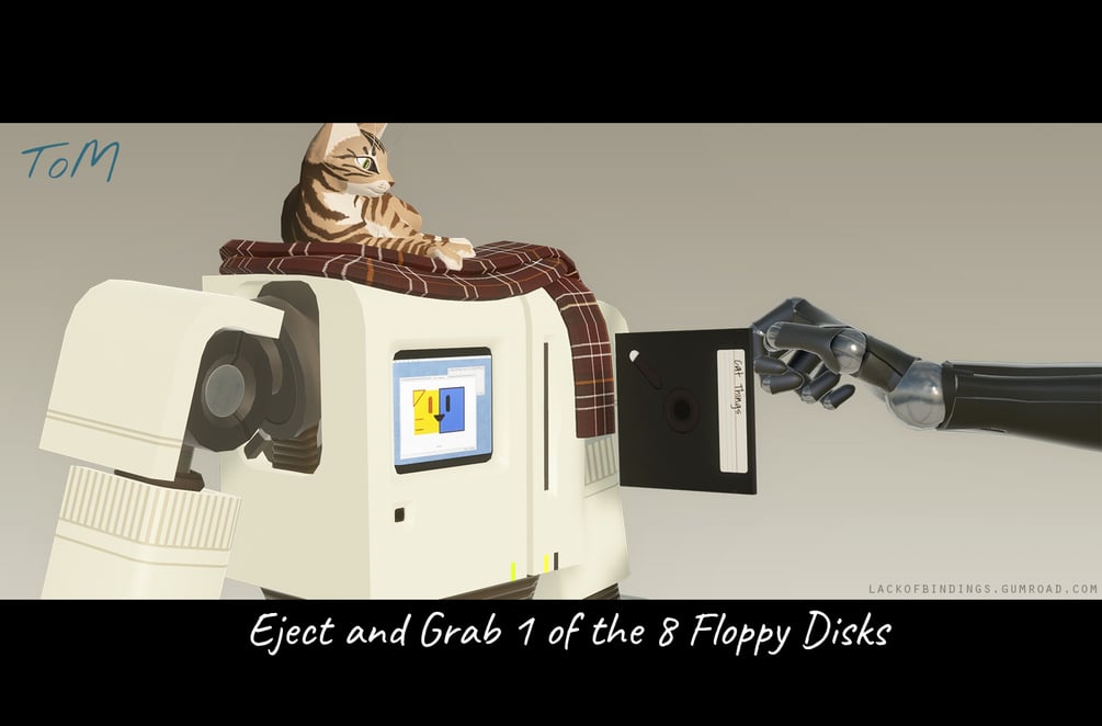 - Eject-able and grabbable floppy disk with 8 random skins (Random skins are PC Only)